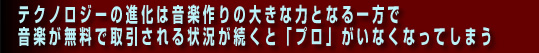 テクノロジーの進化は音楽作りの大きな力となる一方で、音楽が無料で取引される状況が続くと「プロ」がいなくなってしまう