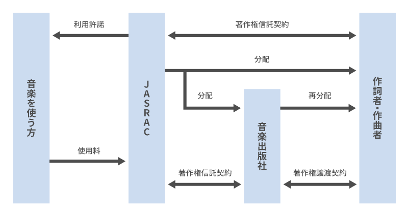 - 使用料が作詞者、作曲者、音楽出版社に届くまで