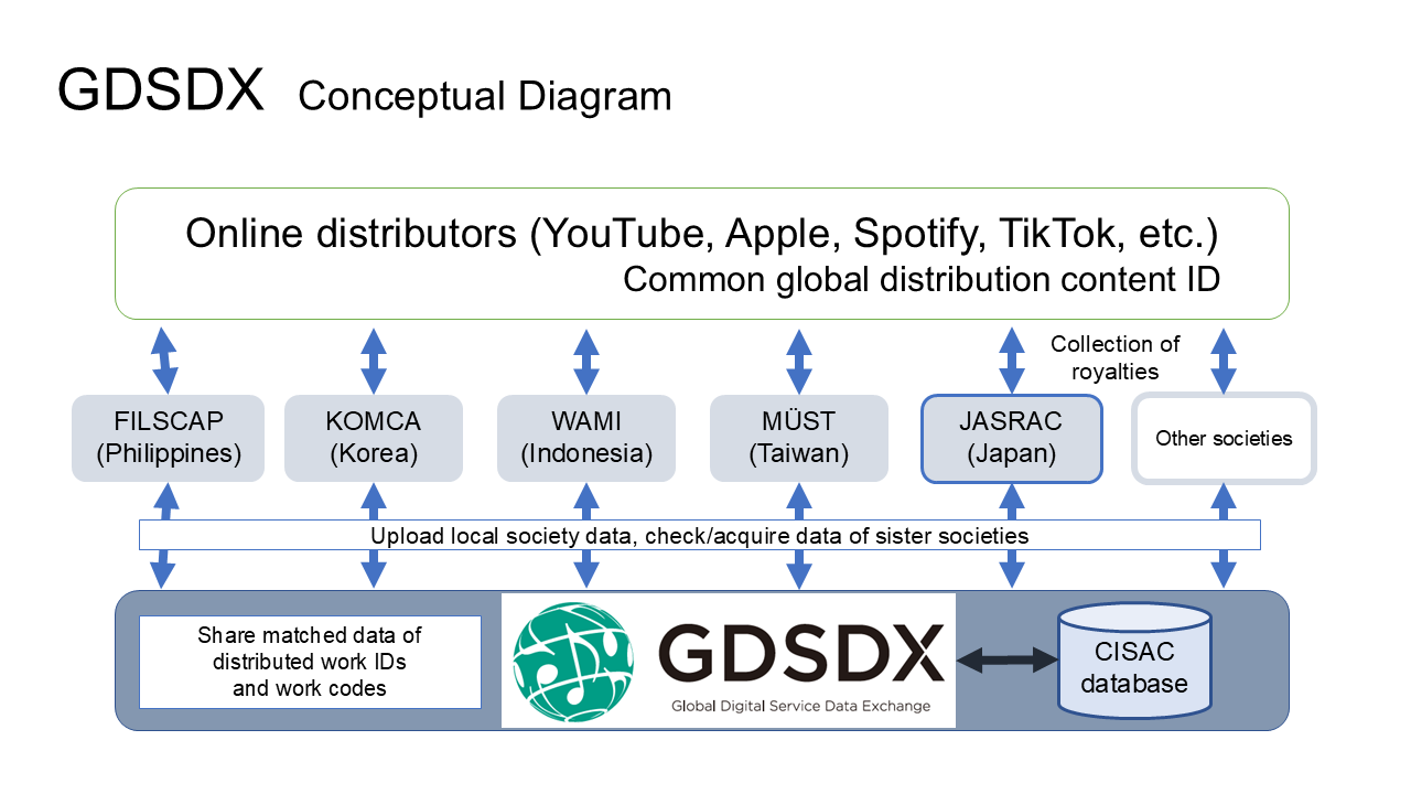 On May 31, 2023, the Japanese Society for Rights of Authors, Composers and Publishers (JASRAC) released and began operating the GDSDX, a platform for sharing and exchanging content information from global video and music distribution services and information managed by copyright management organizations.