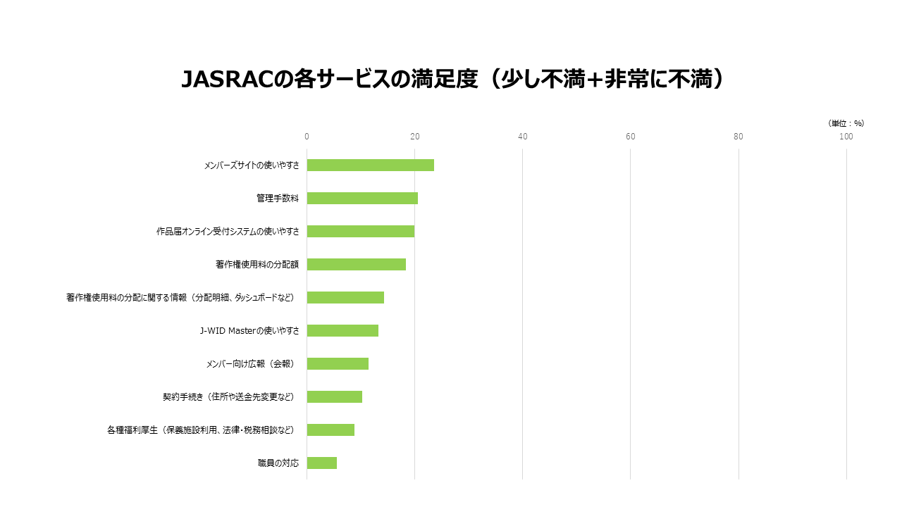 JASRACの各サービスの満足度(JASRACメンバーのみ)/ 満足度の低い項目