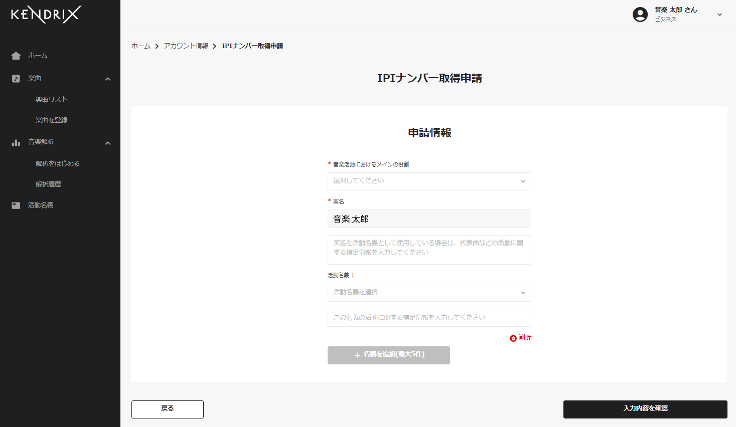 ■KENDRIXの新機能「IPIナンバー取得申請」