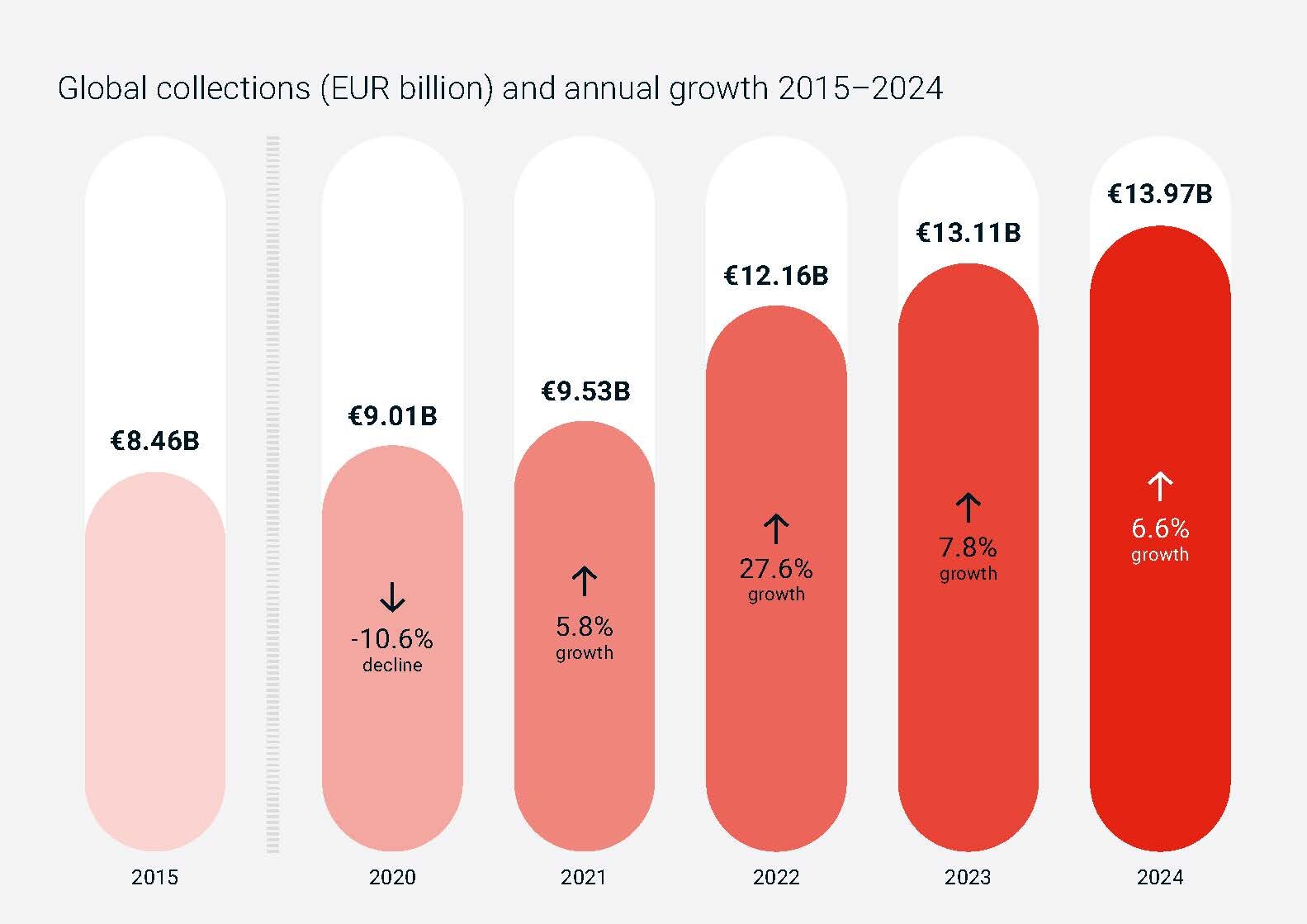 CISAC(著作権協会国際連合)は、加盟する世界の著作権管理団体の2024年の使用料徴収額をもとに、「CISAC Global Collections Report(世界徴収リポート)」の2025年版を発行しました。
