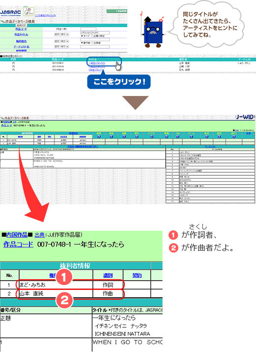他にも歌の本や音楽の教科書、インターネットでも調べられるよ。