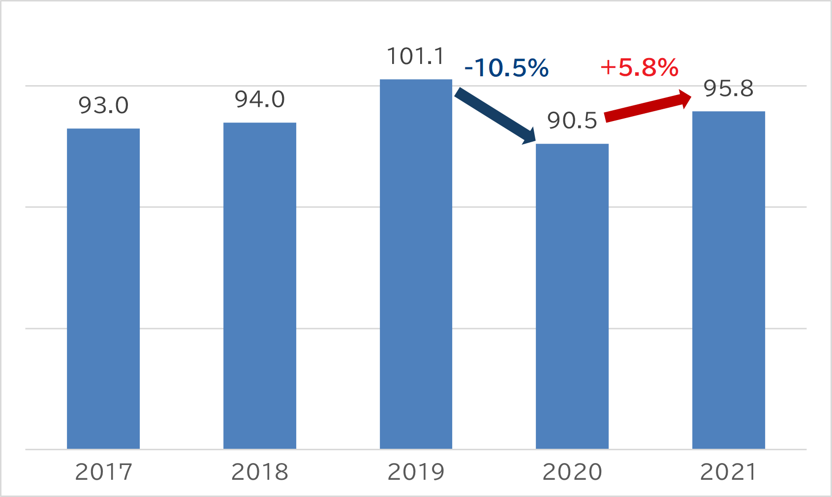 2022年の「CISAC世界徴収レポート」(2021年データ)によると、CISACに加盟する世界中の著作権管理団体の2021年の使用料徴収額は、新型コロナウィルス感染拡大の影響を受け落ち込んだ2020年から5.8%増え、95.8億ユーロ(約1兆2千億円)でした。しかし、コロナ拡大前の2019年の水準には戻っていません。