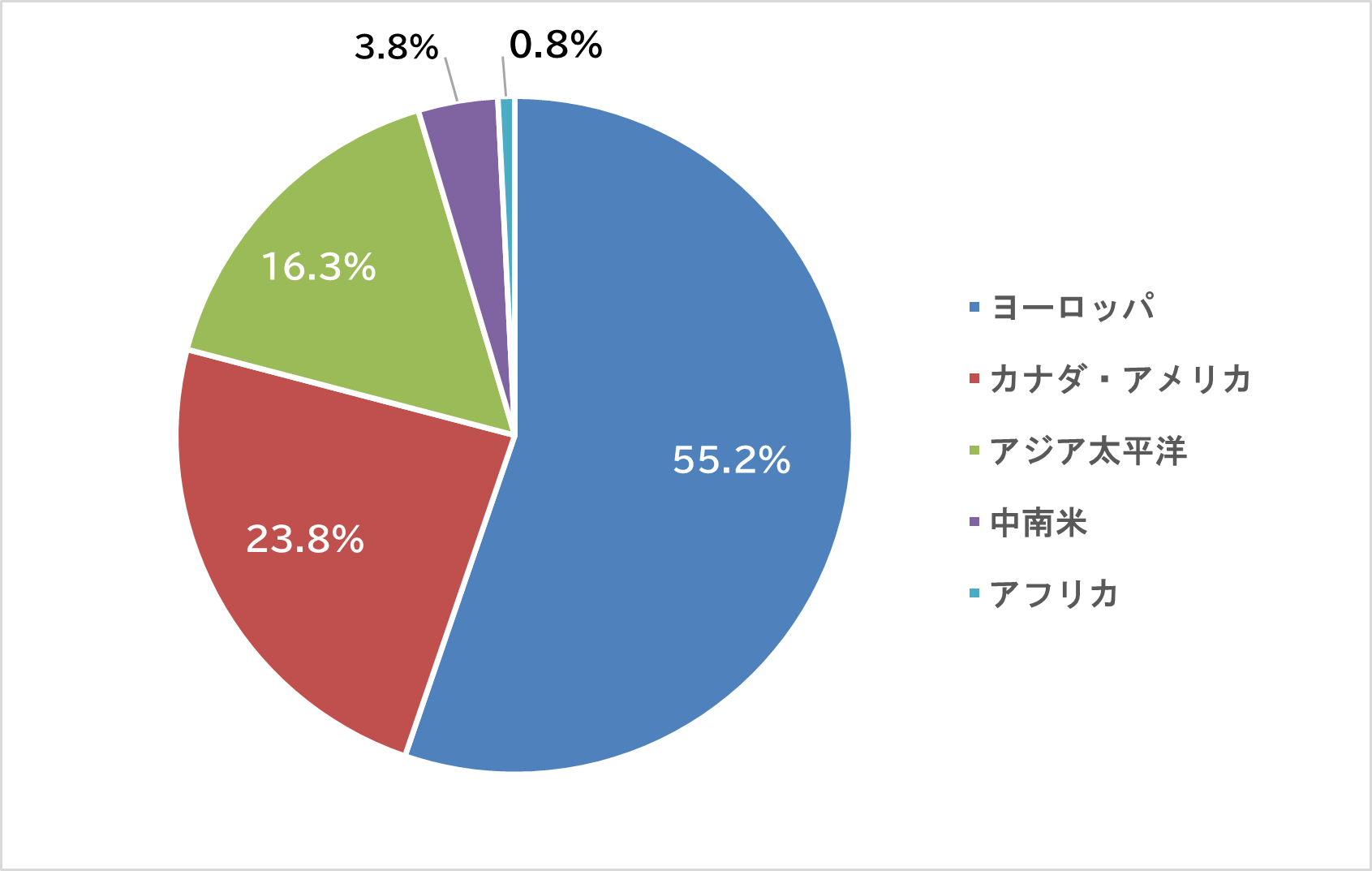 使用料徴収額の地域別の割合を見ると、ヨーロッパ地域が55.2%と最も高く、日本を含むアジア太平洋地域は16.3%でした。アジア太平洋地域の割合は5年前の14.2%より2.1%増加しています。