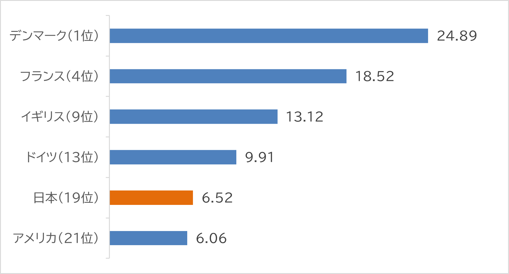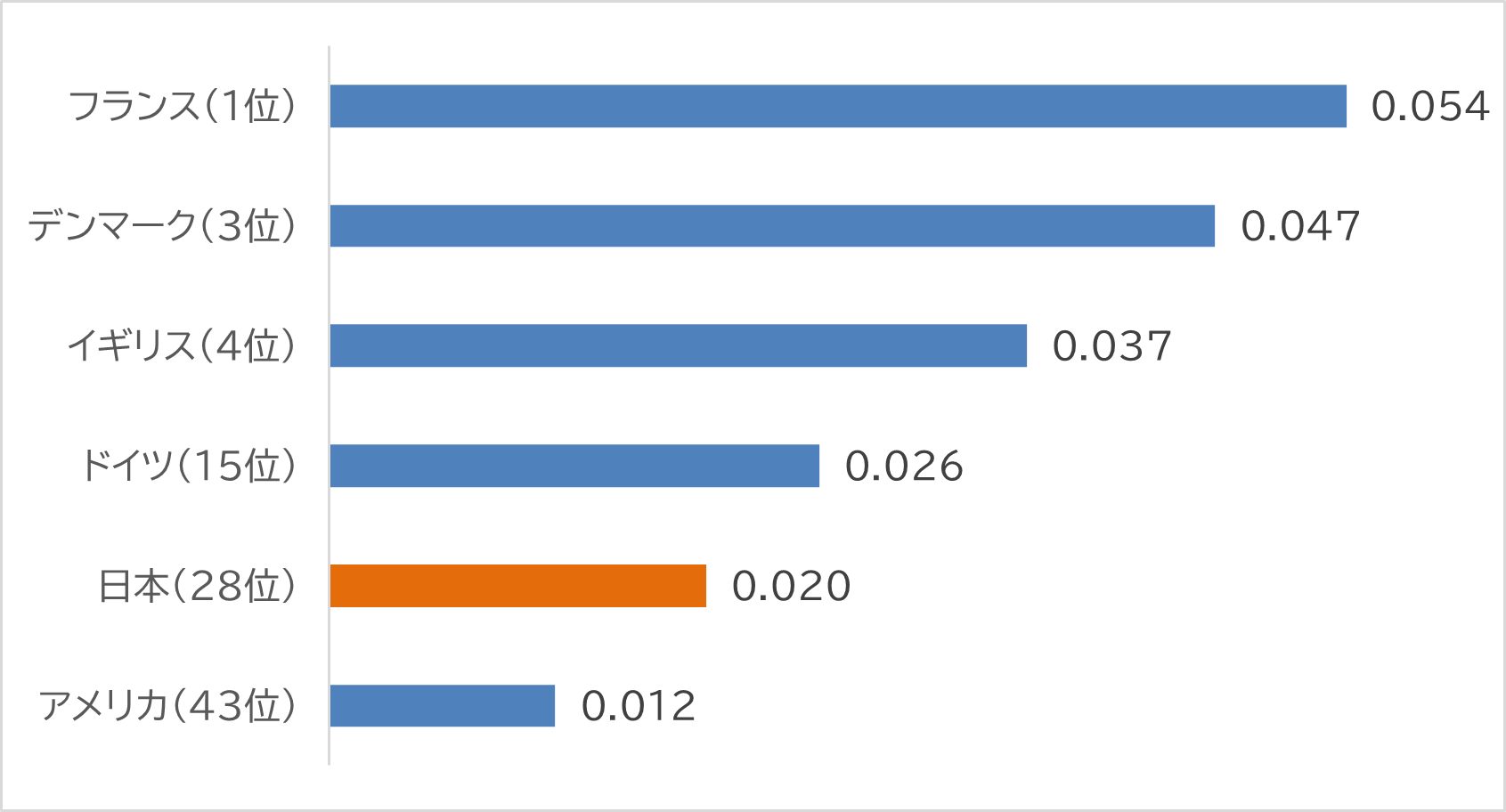1位はフランスの0.054%。日本の割合は0.020%で、世界で28位でした。こうした数字は日本の著作物使用料の徴収額の水準が世界と比較して必ずしも高いとは言えないことを示しています。