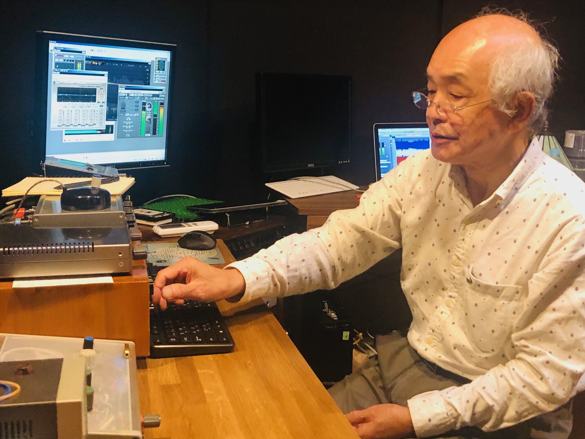 田中三一さんProfile 1942年、兵庫県淡路島生まれ。1969年CBS/SONY(現ソニー・ミュージックエンタテインメント/SMEJ)入社。初めてレコーディングを務めた本田路津子「秋でもないのに」のヒット以降、フォーリーブス、吉田拓郎、山口百恵、渡辺真知子等を手がけ、1982年のCD発売を機にマスタリング・エンジニアに。佐野元春、REBECCA、UNICORN、DREAMS COME TRUE、X JAPAN、電気グルーヴ、スピッツ、JUDY AND MARY、ゴスペラーズ、藤あや子、古典四重奏団など、ポップス、クラブミュージック、演歌、クラシック、沖縄民謡など幅広い分野を手がける。2018年、第25回日本プロ音楽録音賞優秀賞を受賞。SMEJを定年退職後、バーニー・グランドマン・マスタリング、studio ATLIOを経て、現在はstudio Chatriを運営。2021年、第8回JASRAC音楽文化賞受賞。