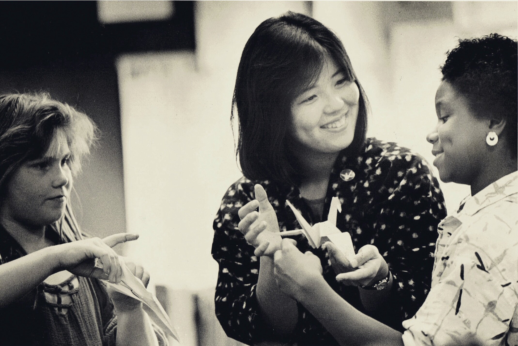 21歳の時に、たまたま新聞の記事で、アメリカで子どもたちに平和啓発を行う若者ボランティアの募集を見つけ、応募したのがきっかけでした。若かったし、引っ込み思案の自分を変えたい、何かやりたい、でも何をしたらいいかわからない、そんなときでした。