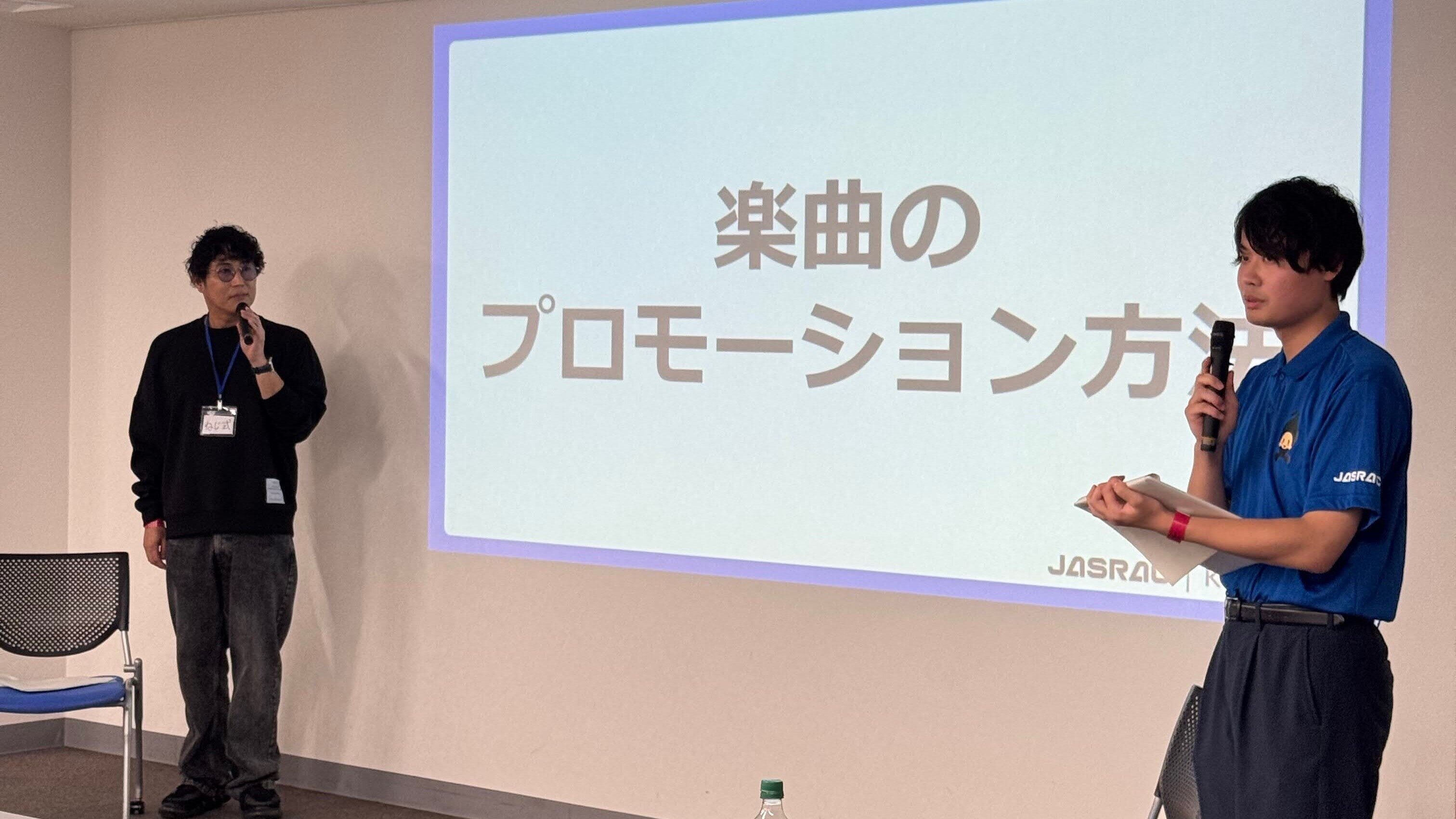 講師のお二人は「楽曲のプロモーション方法」や「音楽で生きていくためのマネタイズのヒント」「盗作や無断利用への対策(KENDRIX)」などについて語りました。セミナーには合計で約100人が参加しました。