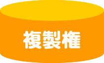 ひとくちに著作権といっても、いくつもの権利があつまって束(たば)になっているんだ。上の図を見ると、「複製権」、「演奏権」、「公衆送信権」などなど、難しい名前の権利がたくさんあるよね。