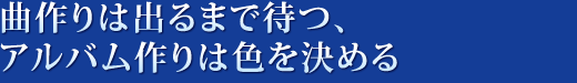 アルバム作りでは、ファンを喜ばせる、いい意味で期待を裏切る、そんなところでコンセプトを見つけて、アルバムの色や風景を最初に設定します。それから曲作りに入ります。今ではすっかり言われなくなった「コンセプトアルバム」の作り方です。最新作の『Cityligths Dandy』はイメージを夜景に特化して、自分と同世代の人たちの琴線に触れるものを、という考えで作りました。今の若い人たちの価値観は散漫になっていて、その中からひとつのポイントを決めていくのは大変なので、今回のようにマーケットを特化しちゃうのもありかなと思って。それでもし、CDを聴いた若い人の中にピンと来る人がいたらそれでいい。今回は特にマニアックに、“ソリッドでありながら複雑に考えられているもの”を目指しました。 |