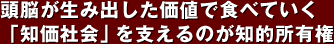 クルマや洋服などの製造業は外国に移転してしまうかもしれませんが、21世紀の日本は、頭脳が生み出した価値で食べていく「知価社会」をいかにして作っていくかが大きなテーマです。そのためには、ゲームソフト、映画、音楽のように頭脳が生み出した作品(著作物)を正当に評価し、クリエイターに報いるような社会を作っていかなければいけないと思います。
